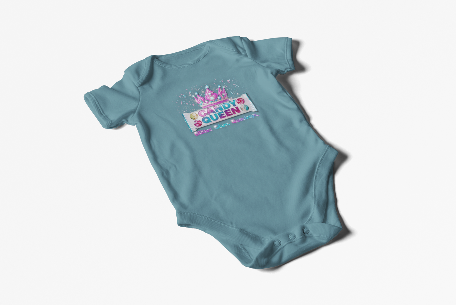 - Candy-wrapper style “CANDY QUEEN” in pink, teal & purple