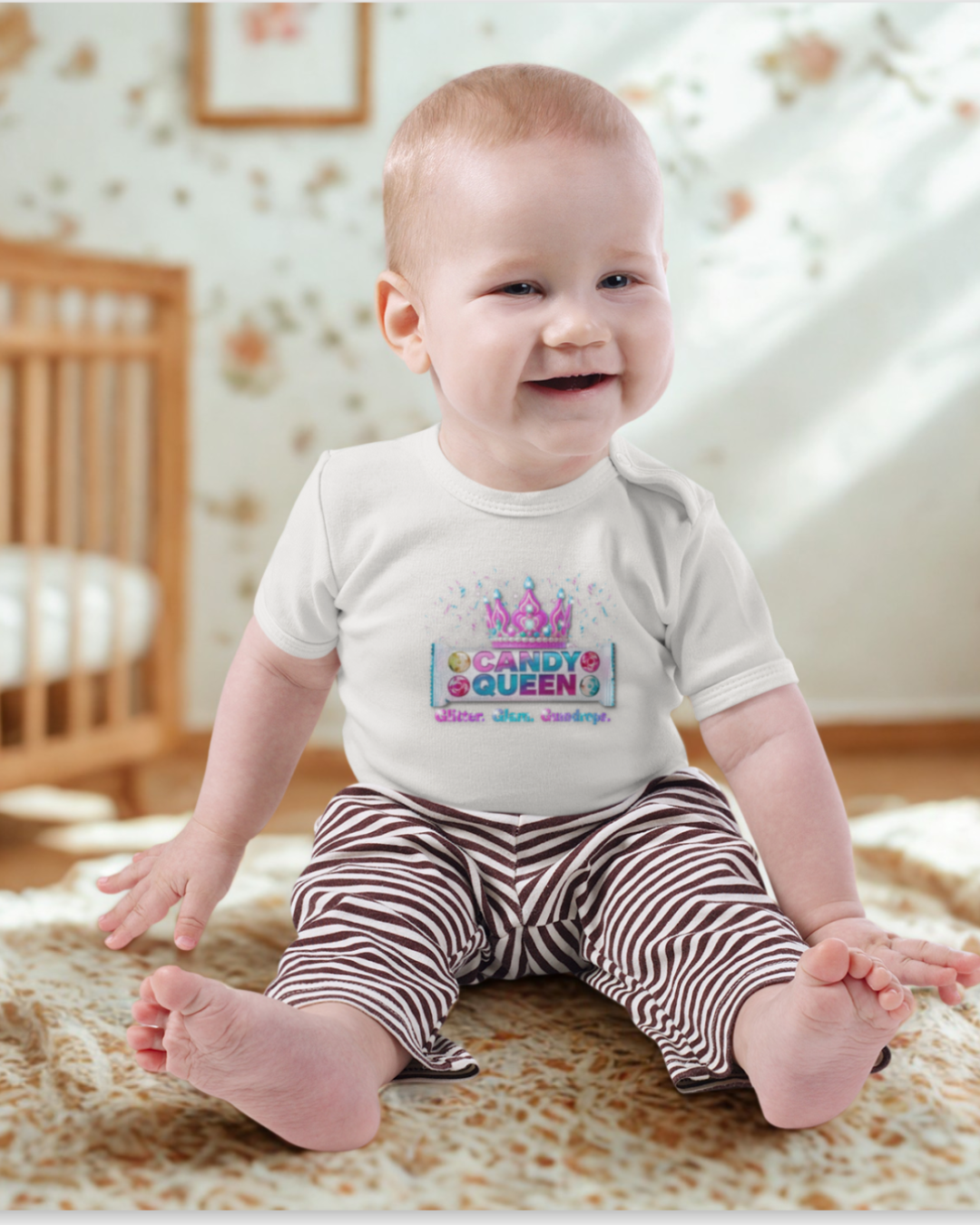 - Baby version of our popular Candy Queen tee – perfect for matching family outfits