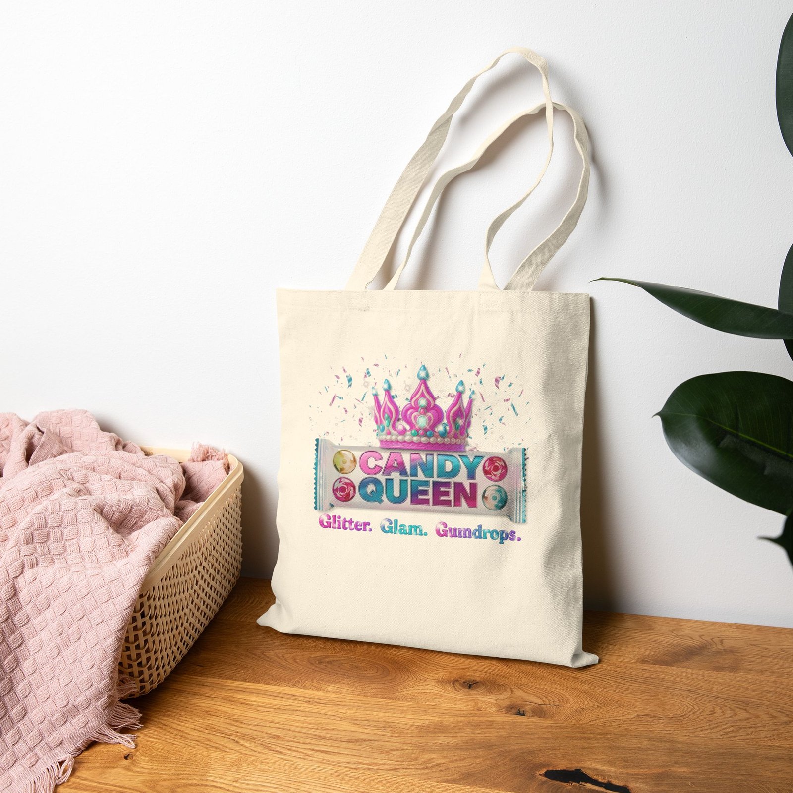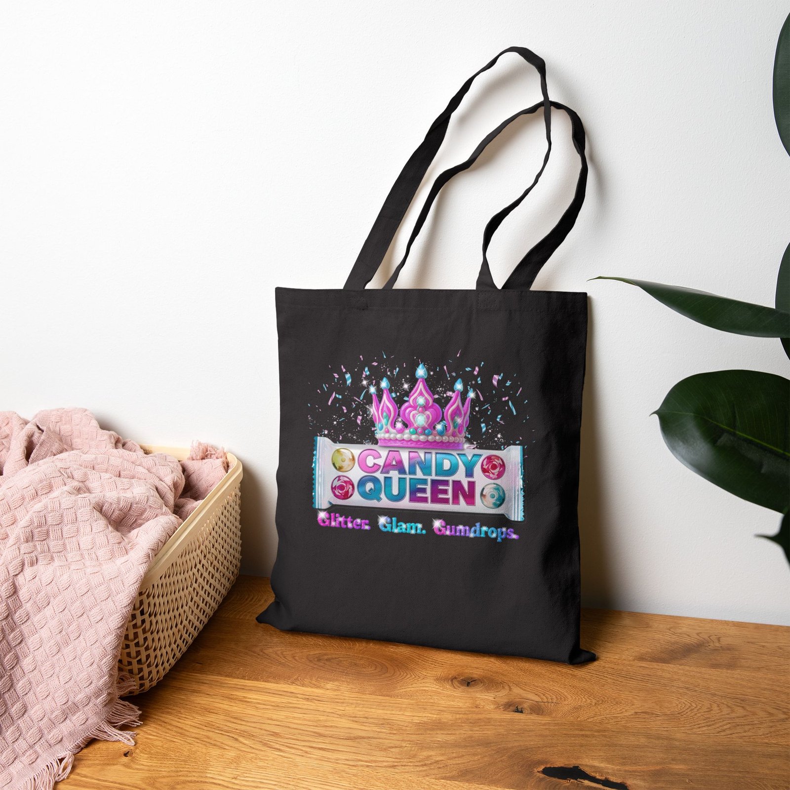 Step into your royal sweet side with this bold Candy Queen tote bag! Featuring a sparkling pink crown and playful candy graphics, this bag is perfect for showing off your personality wherever you go.
