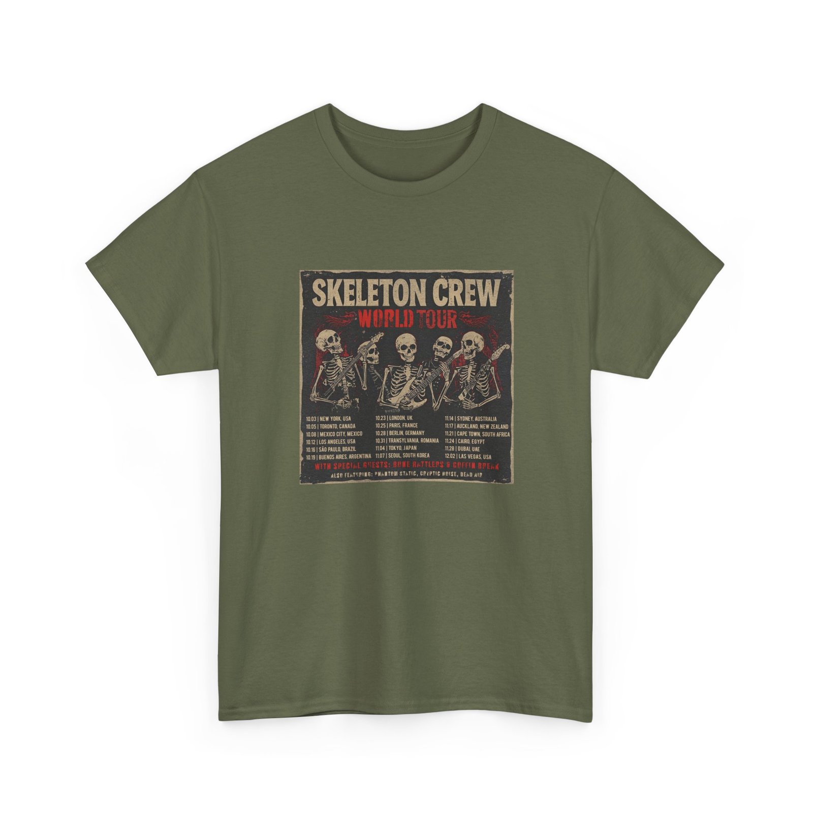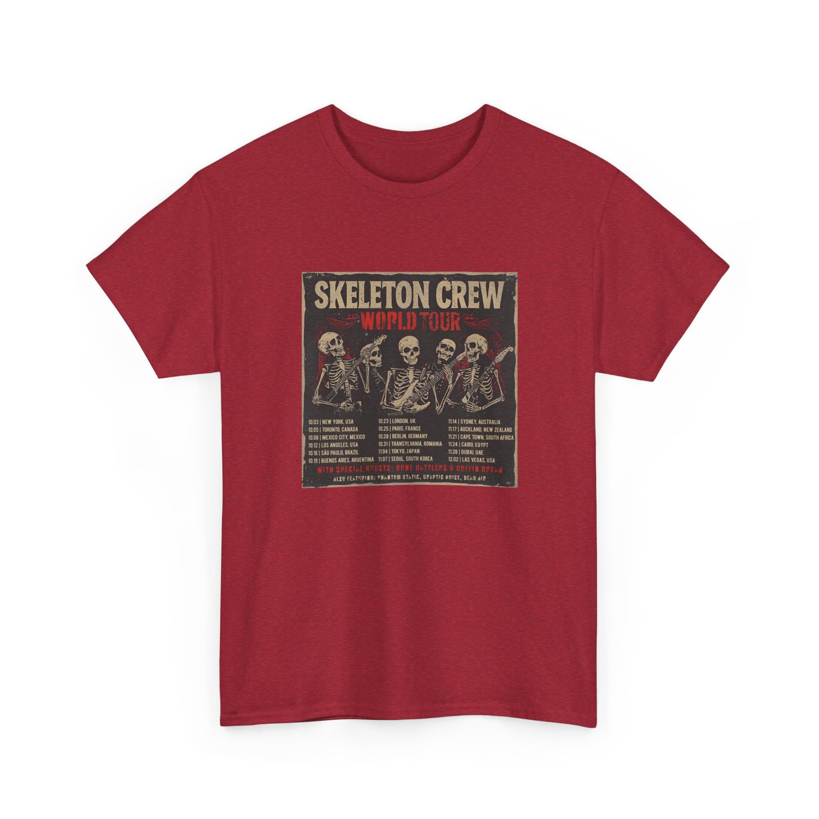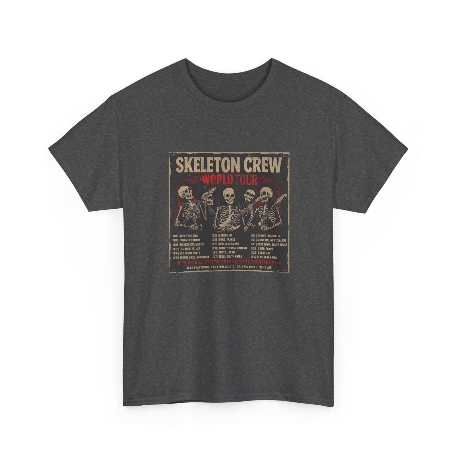 Step into the pit with the Skeleton Crew World Tour Shirt – a vintage-inspired band tee that brings together rock, punk, and Halloween vibes. Designed with a distressed concert poster look, this shirt feels like authentic tour merch you picked up after an epic show.